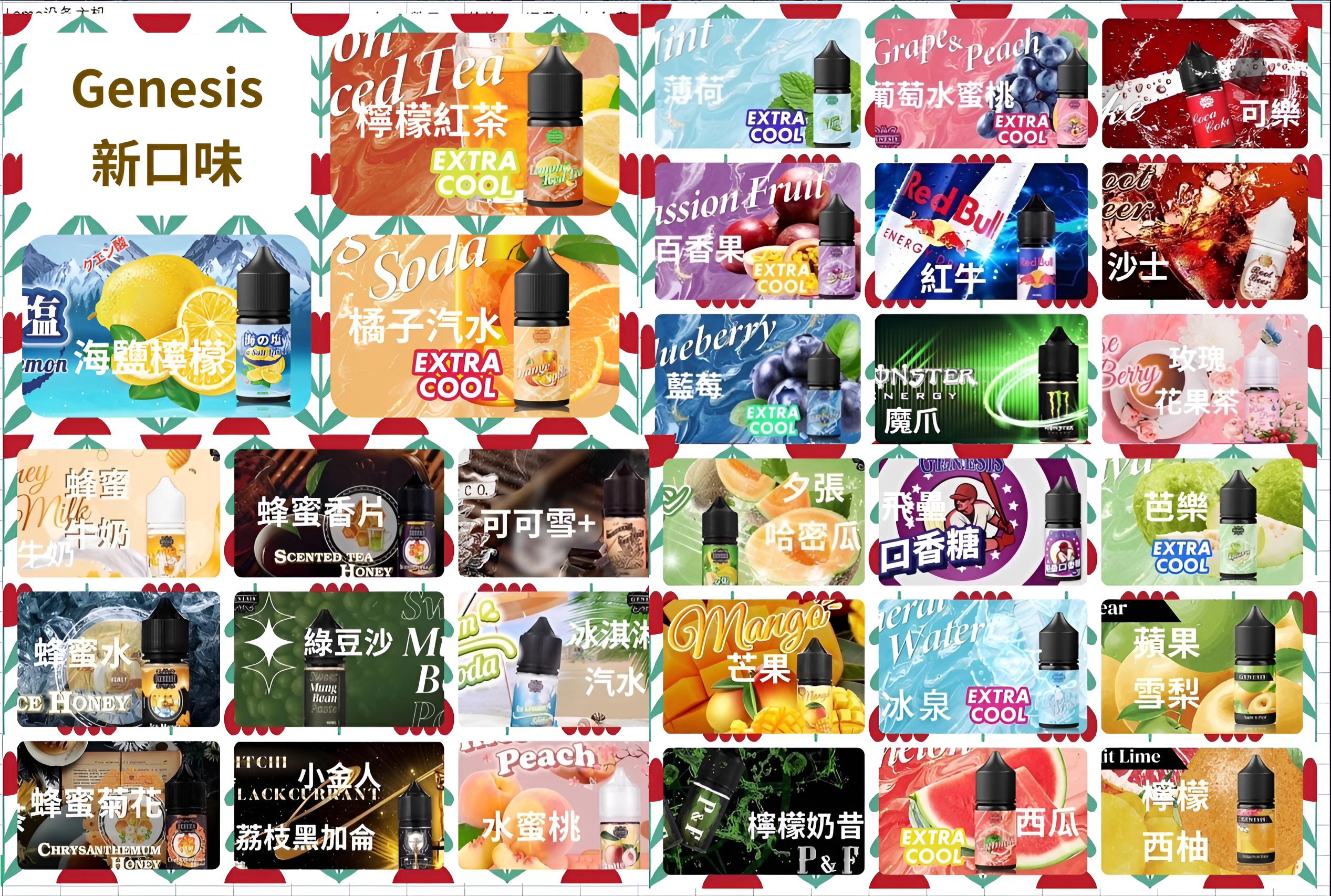 GENESIS 創世紀煙油以精準調香與層次分明的風味著稱,將水果、甜品與飲品的味覺靈魂融合,打造出既熟悉又有驚喜的口感走向。無論你偏好清爽系或濃郁系,都能在系列中找到合拍選擇,適合追求高還原度與穩定表現的電子煙玩家。